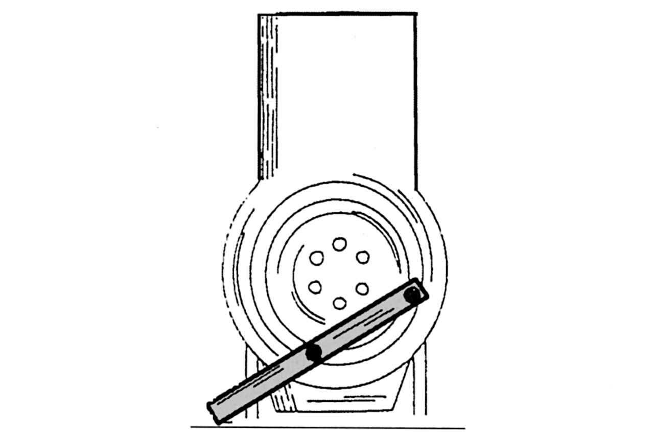 — зафиксировать маховик от проворачивания и отвернуть крест-накрест болты крепления сцепления. Иногда эти болты отворачиваются без фиксации маховика с помощью вставного шестигранного ключа. Для этого необходимо надеть на рукоятку ключа вспомогательный рычаг и, удерживая одной рукой ключ в головке болта, ударять другой рукой по верхнему концу вспомогательного рычага. В большинстве случаев от таких ударов по ключу болты отворачиваются. Для фиксации маховика можно воспользоваться отрезком металлической полосы, просверленной в двух точках и закрепленной к маховику с помощью двух болтов, как показано на