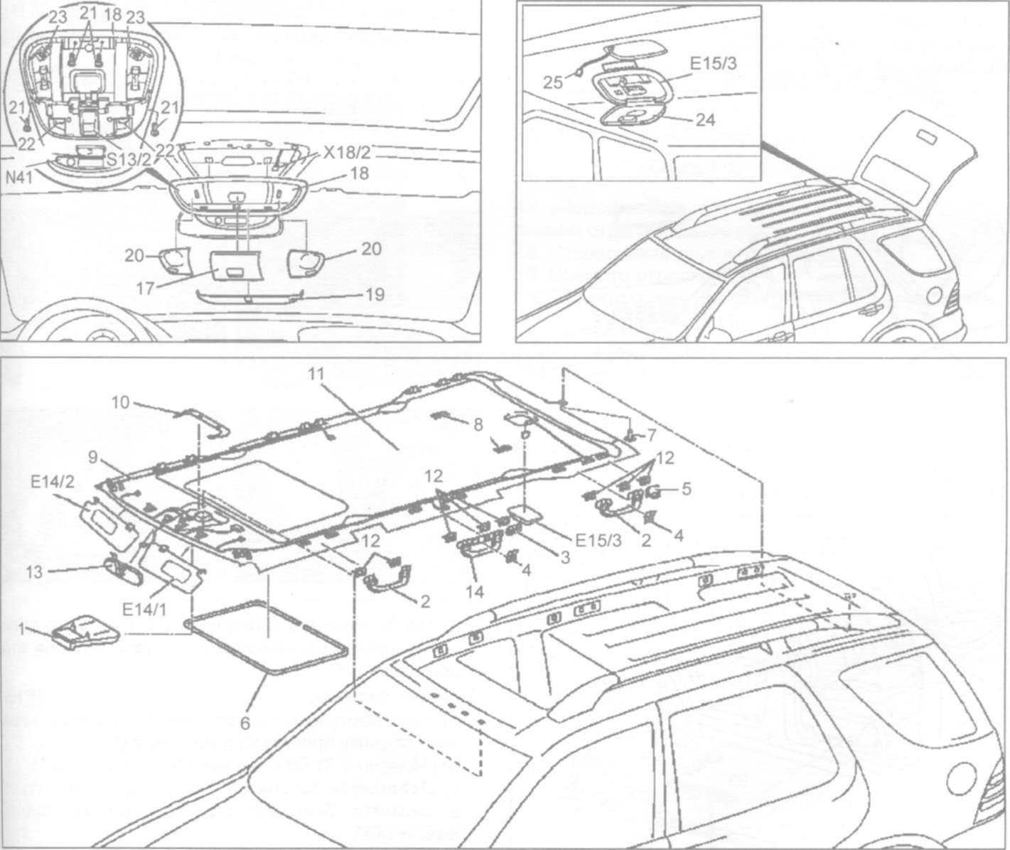 в) Отсоедините лампу, отсоедините разъем (25) и снимите лампу освещения багажного отделения (Е15/3).